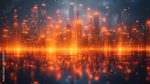 © Wasin Arsasoi, Obraz premium Cityscape with abstract particles.