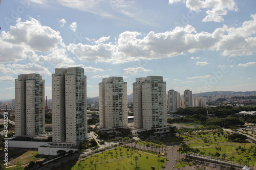 Naklejka premium Cityscape with blue sky on a sunny day