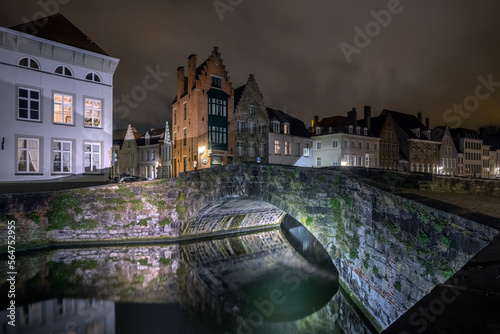 © Дмитрий Финкель, Fototapeta premium Cityscape with bridge and embankment in the evening city of Bruges (Belgium)