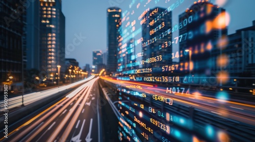 © Anak, Fototapeta premium Cityscape with Data Overlay