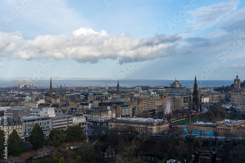Naklejka premium Cityscape with Ferris Wheel and Ocean View