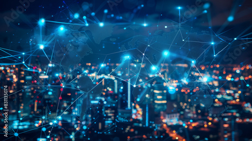 Fototapeta premium Cityscape with Global Network Connections and Digital Links