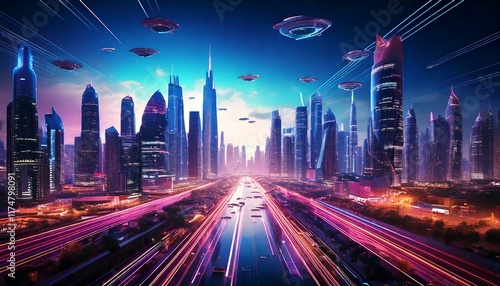 Fototapeta premium cityscape with glowing skyscrapers