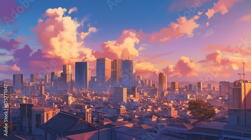 © XtzStudio, Fototapeta premium Cityscape with Golden Sunset