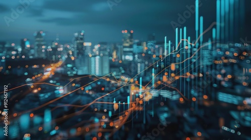 Fototapeta premium Cityscape with Graph and Lights