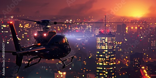© jambulart, Obraz premium Cityscape with Helicopter Spotlight