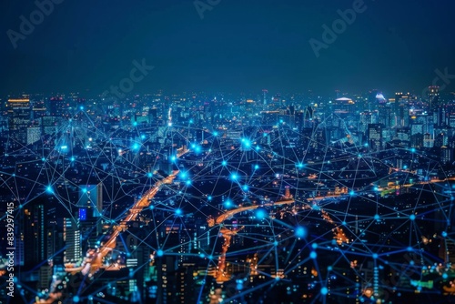 © Sandu, Fototapeta premium Cityscape with illuminated network of lights