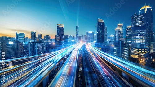 © @desy, Fototapeta premium Cityscape with Light Trails