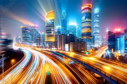 © TEN.POD, Fototapeta premium Cityscape with Light Trails at Night.