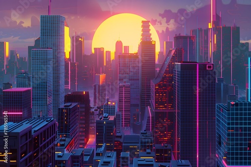 Obraz premium Cityscape with many tall buildings lined with isometric city concept.