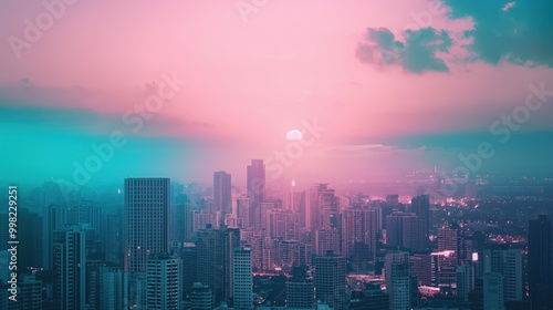 Fototapeta premium Cityscape with Neon Glow, Vaporwave Twilight.