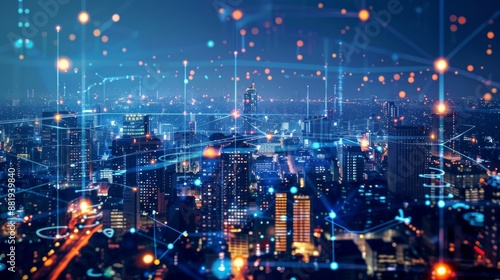 © Photock Agency, Obraz premium Cityscape with Network Connections at Night