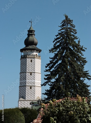 Fototapeta premium cityscape with old renovated tower of Town Hall in BIECZ