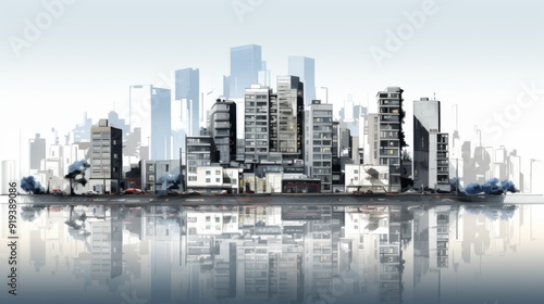 Fototapeta premium Cityscape with Reflection in Water