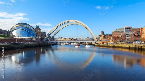 Obraz premium Cityscape with River and Bridge