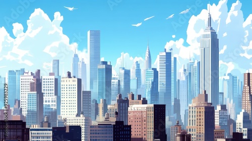 Fototapeta premium Cityscape with Skyscrapers and Blue Sky.