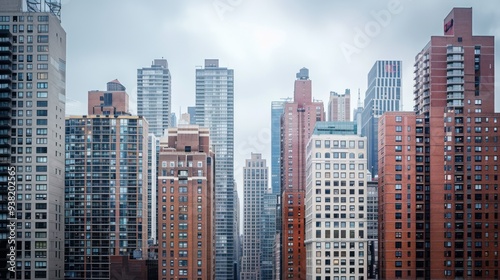 Obraz premium Cityscape with Skyscrapers and Overcast Sky