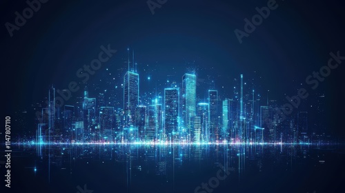 Fototapeta premium cityscape with space and neon light effect. Modern hi-tech, science, futuristic technology concept. Abstract digital high tech city design for banner background