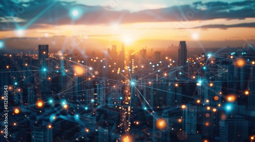 © Wahyu, Fototapeta premium cityscape with space and neon light effect. Modern hi-tech, science, futuristic technology concept AI generated