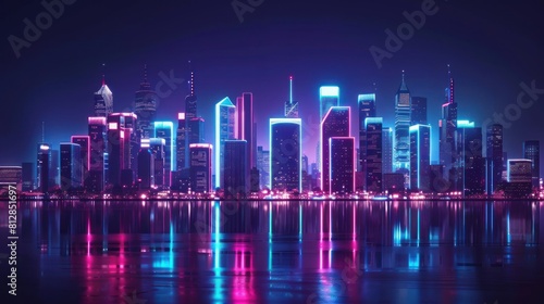 © Wahyu, Fototapeta premium cityscape with space and neon light effect. Modern hi-tech, science, futuristic technology concept AI generated