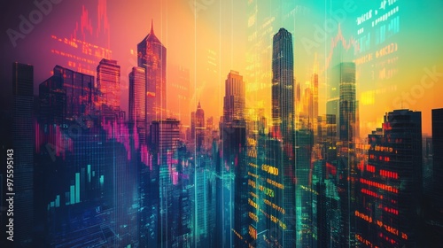 Fototapeta premium Cityscape with Stock Market Data