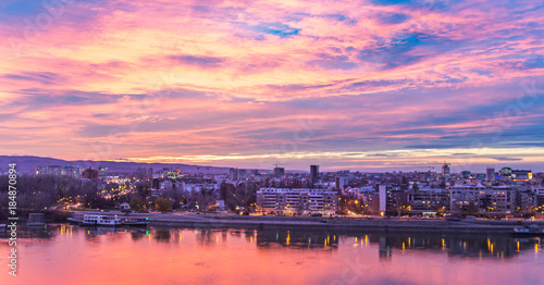 © miroslavrc, Obraz premium Cityscape with sunset and clouds.