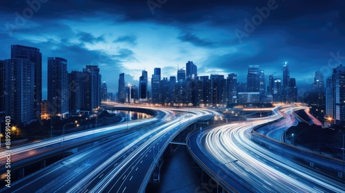 Fototapeta premium Cityscape with Traffic Trails at Night.