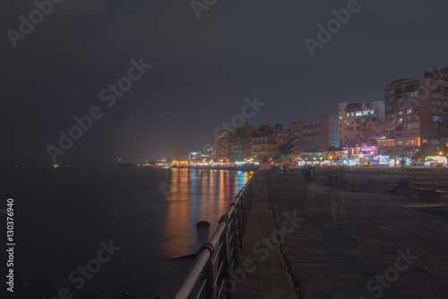 Naklejka premium Cityscapes and skyline Tam sui, sea-side district in New Taipei, Taiwan