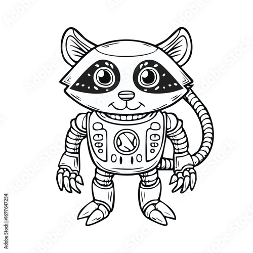 © cloud7days, Fototapeta premium Civet Robot vector illustration in hand-drawn sketch style with minimalist detail