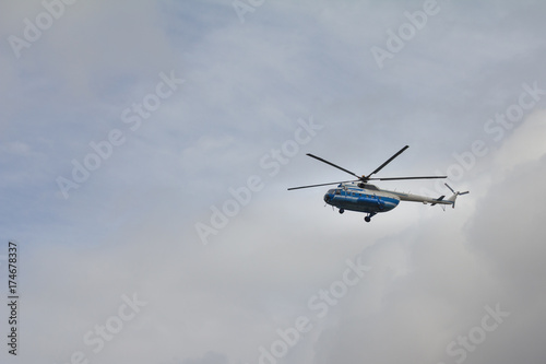Fototapeta premium Civil helicopter in cloudy sky