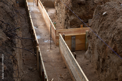 © lusia599, Obraz premium Clapboards for concrete foundation of a house