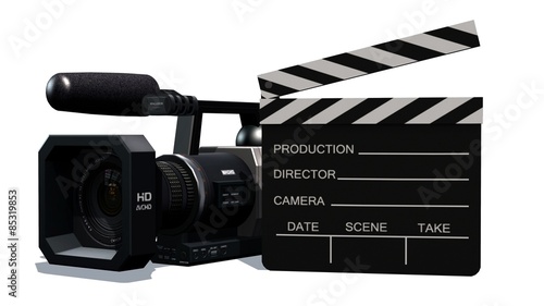 © Riko Best, Fototapeta premium clapper board and HD camera isolated on white background
