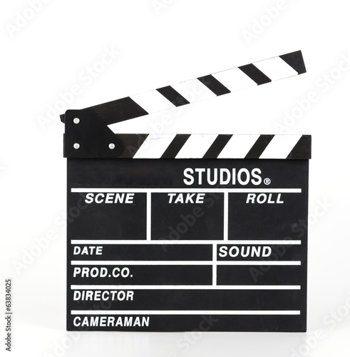 © siraphol, Fototapeta premium Clapper movie board isolated white background