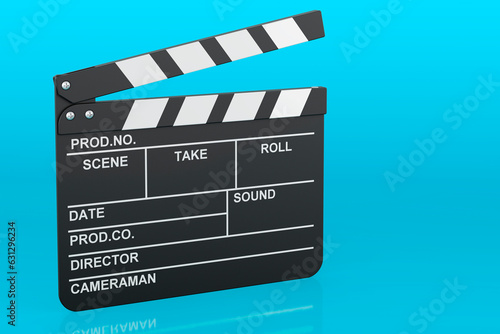 © natatravel, Fototapeta premium Clapperboard on blue background, 3D rendering