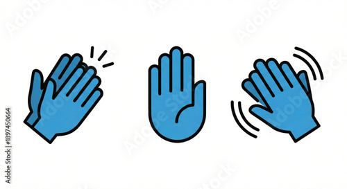 © MstSetu, Fototapeta premium Clapping, stop, and waving hand gestures represented by blue flat icons