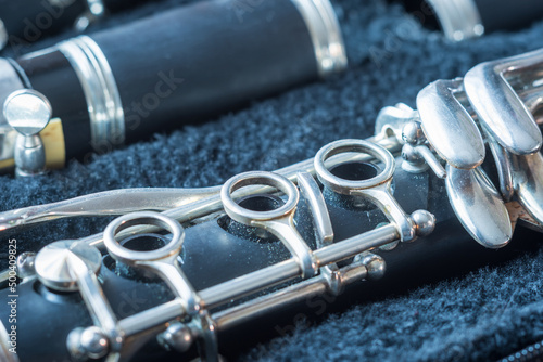 Fototapeta premium clarinet inside musical instrument storage case closeup