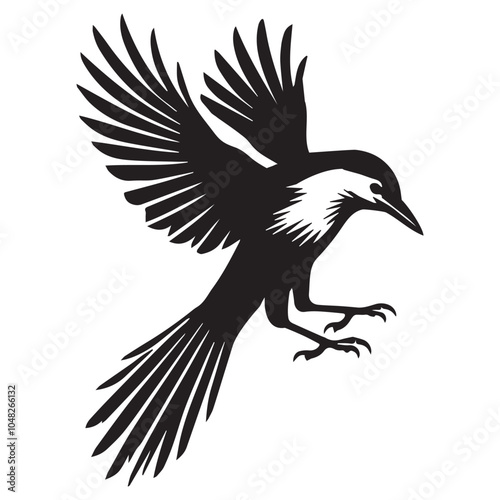Fototapeta premium Clarks nutcracker Bird illustration in black and white - Clarks nutcracker Silhouette Design