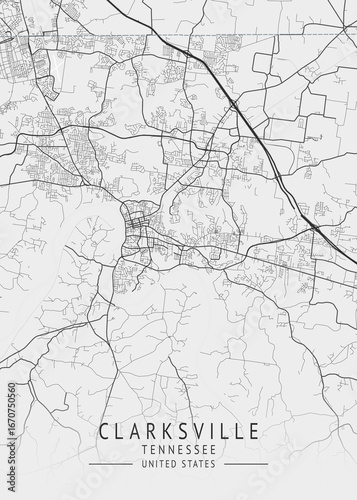 © Tien Stencil, Obraz premium Clarksville - Tennessee - US Gray Map Art