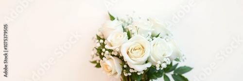 © methinee, Fototapeta premium Classic and timeless arrangement of white roses and baby's breath in a delicate bouquet on a smooth white gradient background, floral arrangement, classic flowers