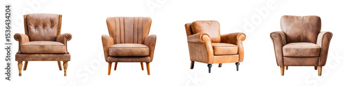 © T Studio, Naklejka premium Classic and Vintage Leather Armchairs in a Living Room Setting