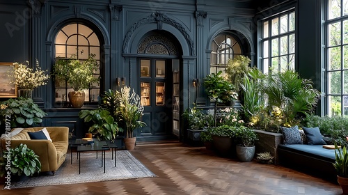 © Kalidasi, Fototapeta premium Classic architecture meets greenery indoors high resolution photo