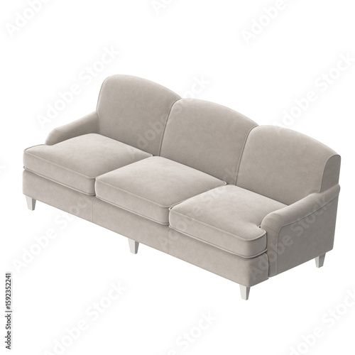 Fototapeta premium Classic beige sofa in isometric view, 3D render isolated on transparent background.