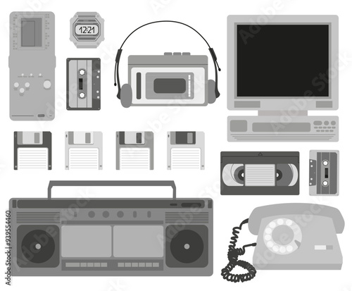 Obraz premium Classic black and white elements of the 90s in a modern style, flat, line...