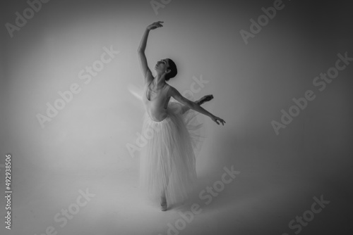 Naklejka premium classic black and white photo, young pretty, fragile, beautiful ballerina...