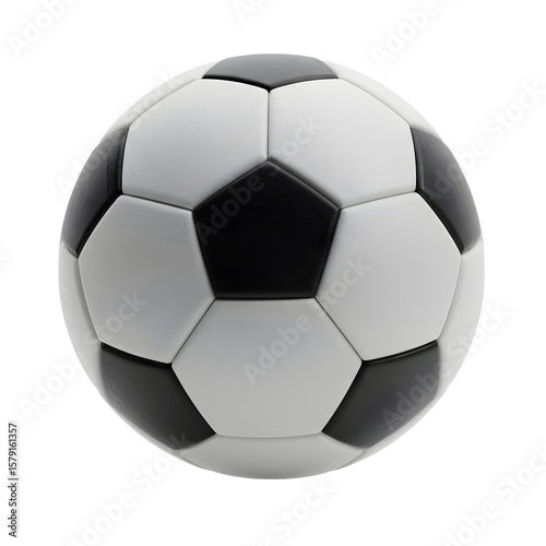 Fototapeta premium Classic Black and White Soccer Ball: High-Resolution 3D Render, Sport, Game, Competition, Victory, Teamwork, Championship, Athletic, Energy, Success.