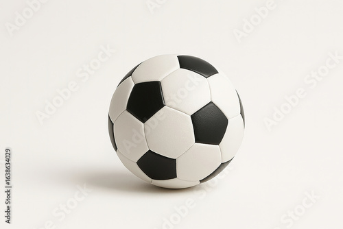 Obraz premium Classic black and white soccer ball on a light surface, ideal for sports,...