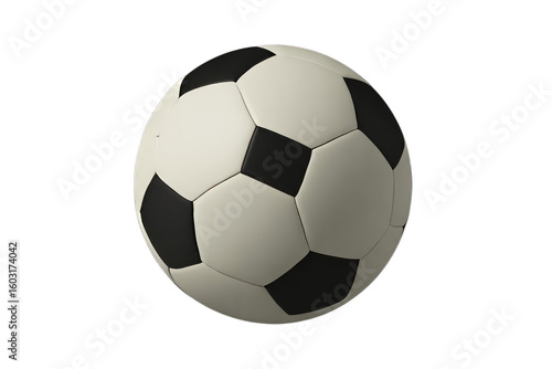 Obraz premium Classic Black and White Soccer Ball on Black Background for Sports and...