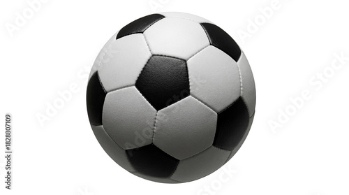 © Marcel, Obraz premium Classic black and white soccer ball PNG isolated, traditional football equipment for sports and recreation on transparent background