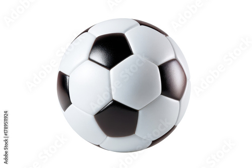 © PNG House, Obraz premium Classic black and white soccer ball with hexagonal panels on black background sport game 1