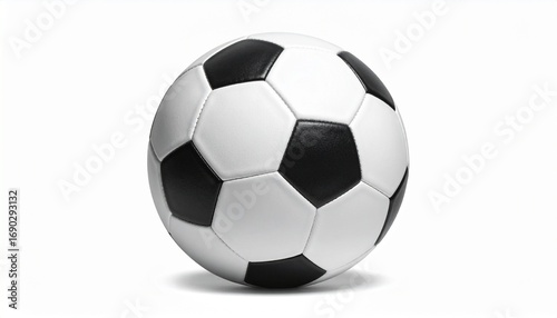© Nidae, Obraz premium "Classic black and white soccer ball with pentagon and hexagon pattern, isolated on a plain white background."